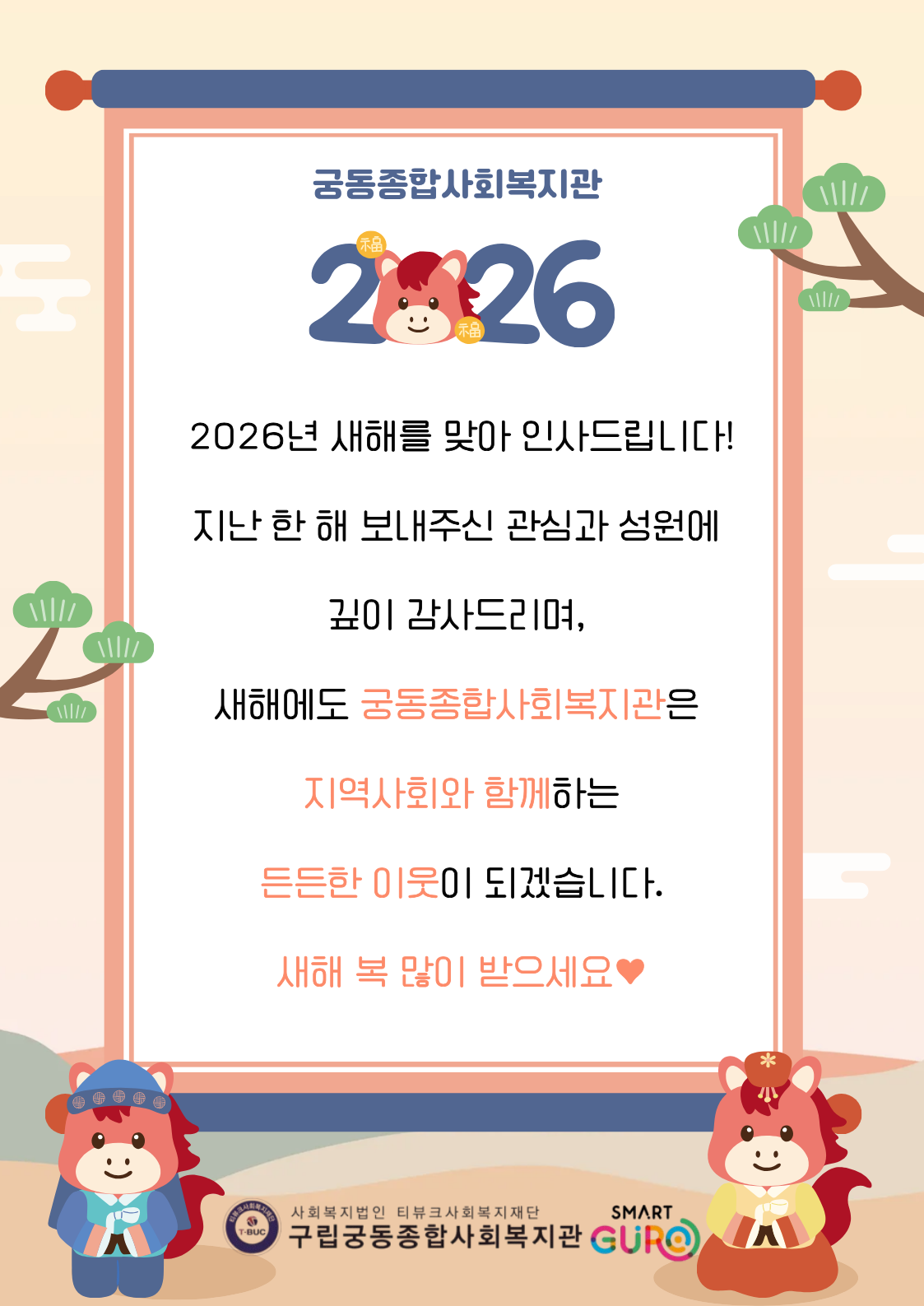 • 지역주민과 협력하여 건강한 복지 공동체를 구현하겠습니다.