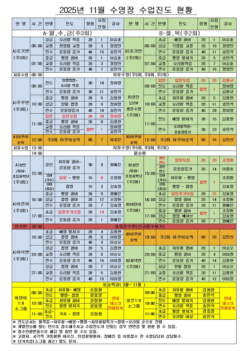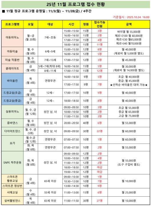 ★2025년 11월 프로그램 신규모집 현황(수영, 교육문화)★