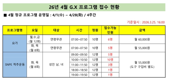 ★2026년 4월 프로그램 신규모집 현황(수영, 교육문화、GX)★