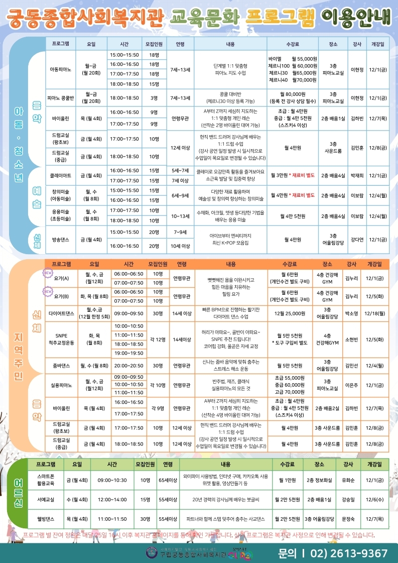 2023년 12월 궁동종합사회복지관 프로그램 안내지