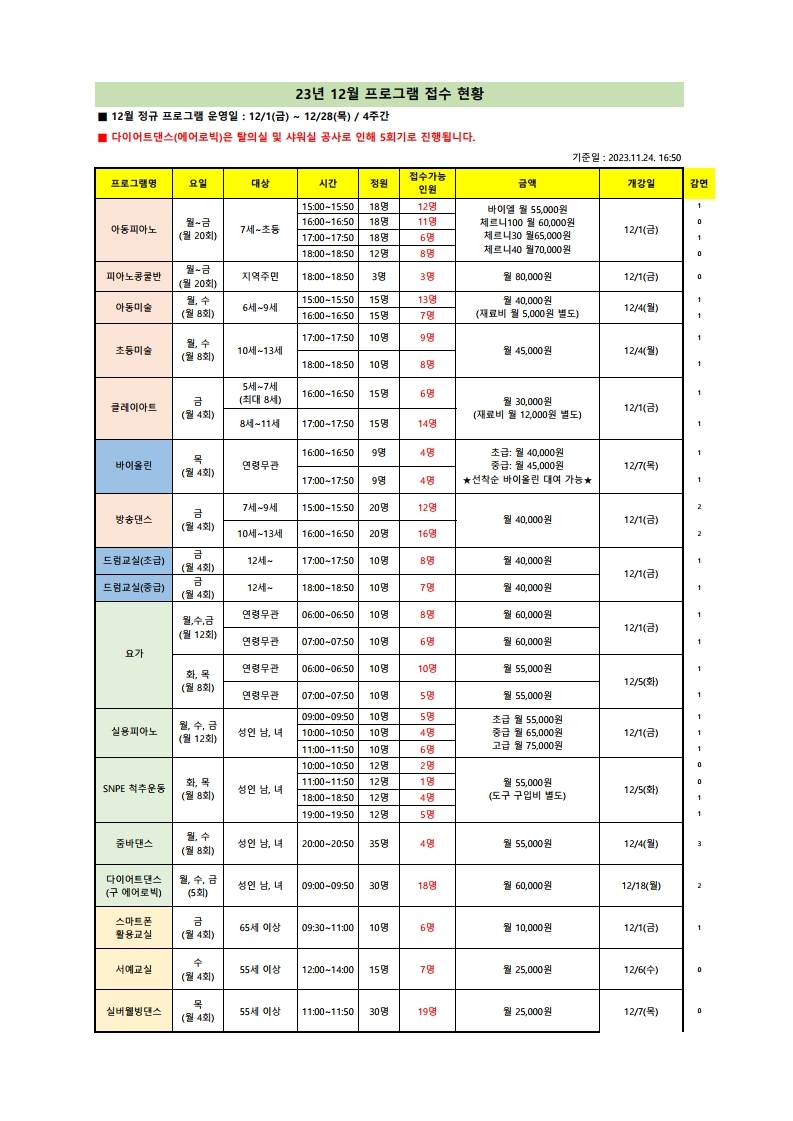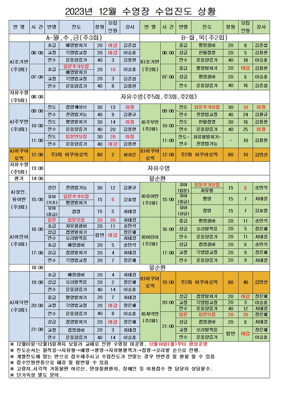 ★2023년 12월 진도현황 및 신규모집 현황(수영, 교육문화)★