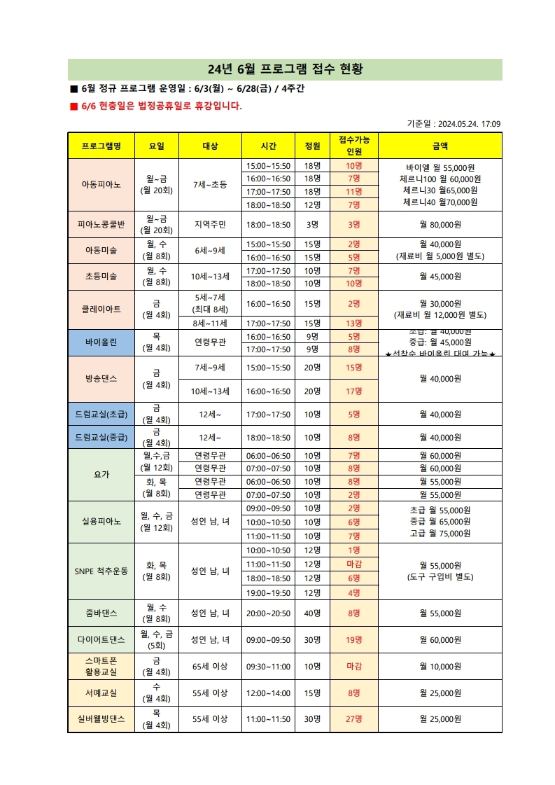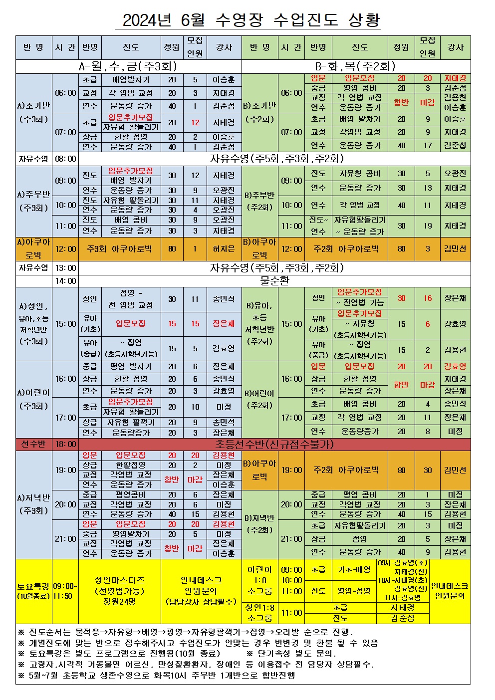★2024년 6월 프로그램 진도현황 및 신규모집 현황(수영,교육문화)★