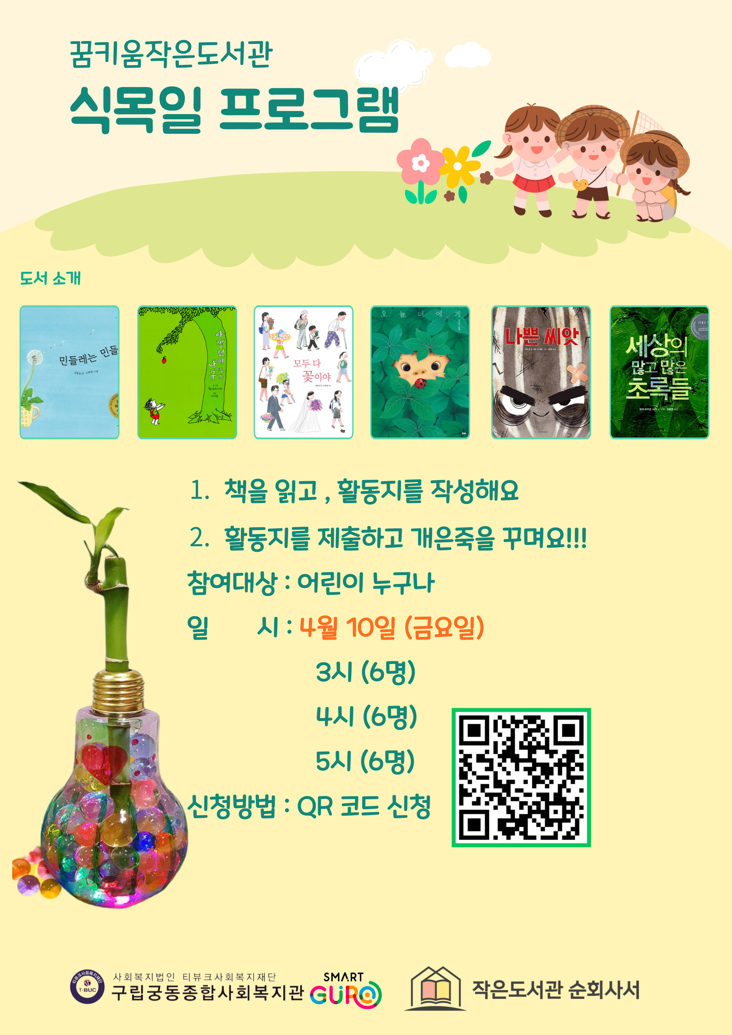 4월 꿈키움작은도서관에서 진행되는 이벤트를 공유드립니다!