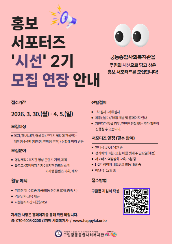 홍보 서포터즈 시선 2기 모집 연장 안내