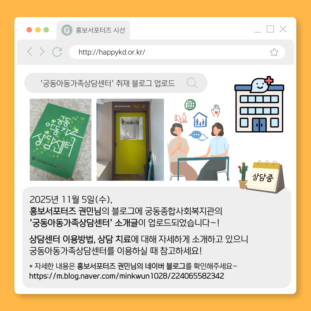 2025년 궁동종합사회복지관 홍보 서포터즈 '시선' 11월 활동 공유♥