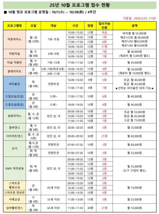 ★2025년 10월 프로그램 신규모집 현황(교육문화, 수영)★