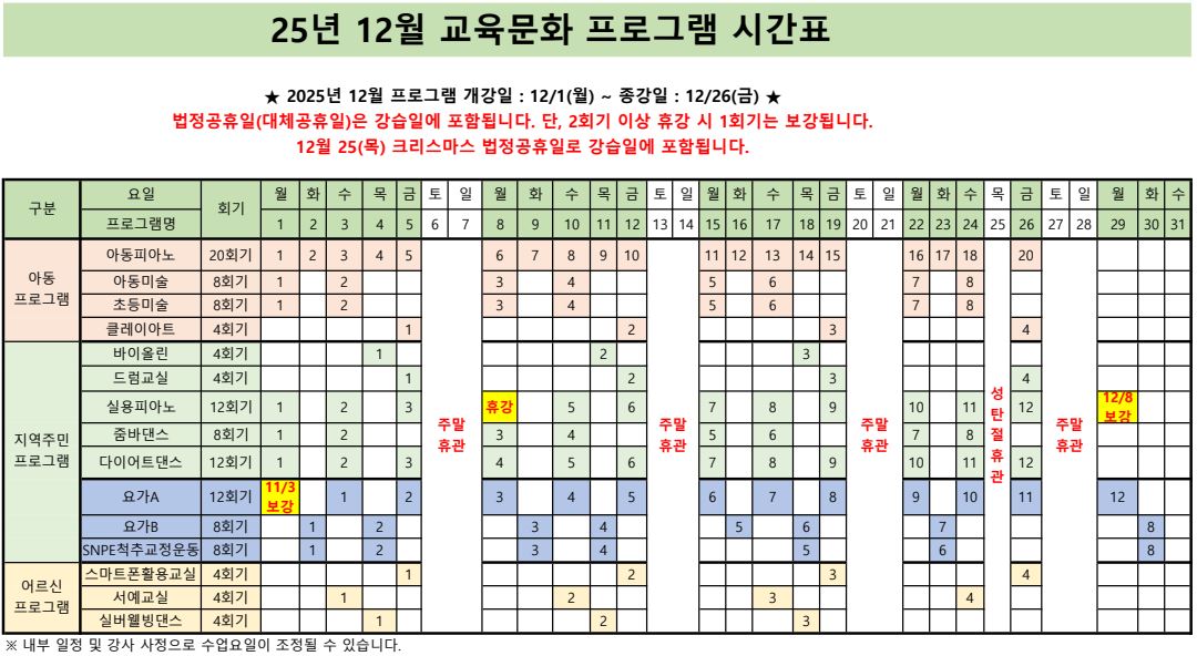 ★2025년 12월 교육문화 시간표★