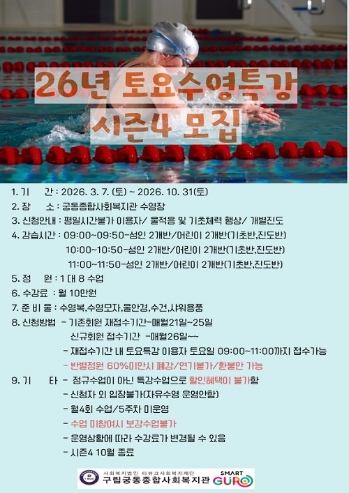 2026년 시즌4 토요수영특강 안내