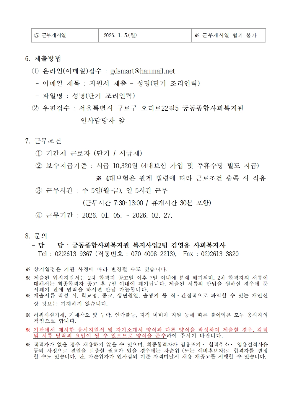 2026년 무료급식사업 경로식당 단기 조리인력 모집 채용 공고(긴급)