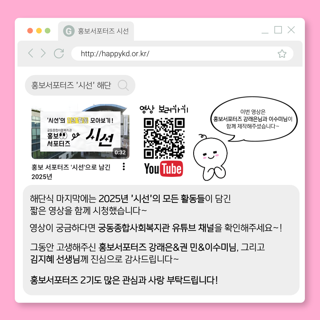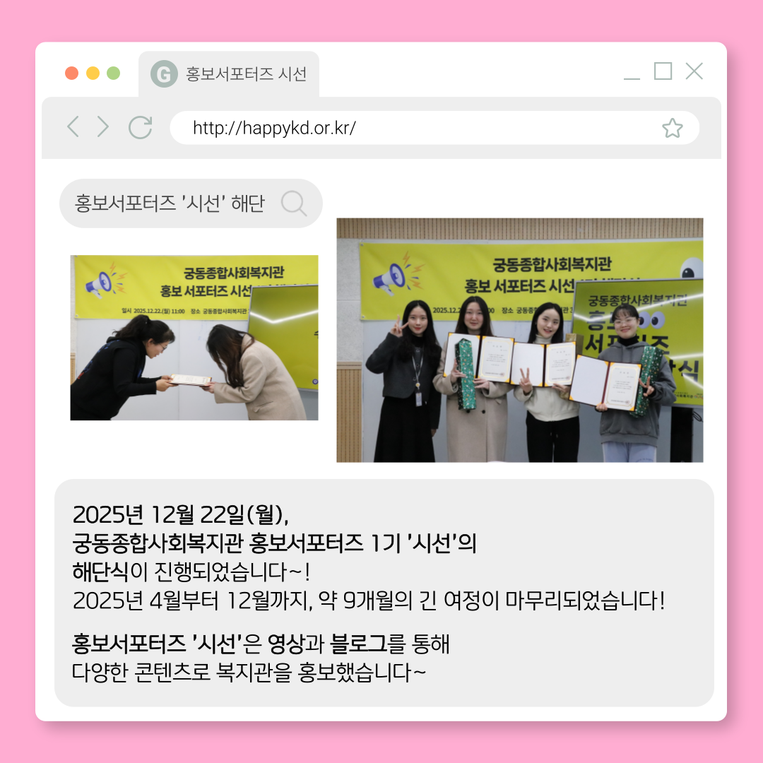 2025년 궁동종합사회복지관 홍보 서포터즈 '시선' 12월 활동 공유♥