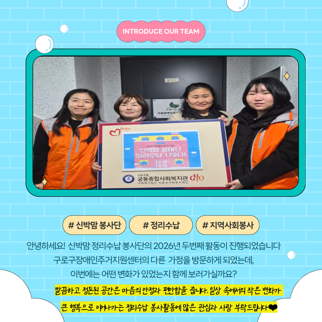 안녕하세요~! 지난 3월에는 신박맘 봉사단의 2026년 2회기 활동이 이뤄졌습니다!